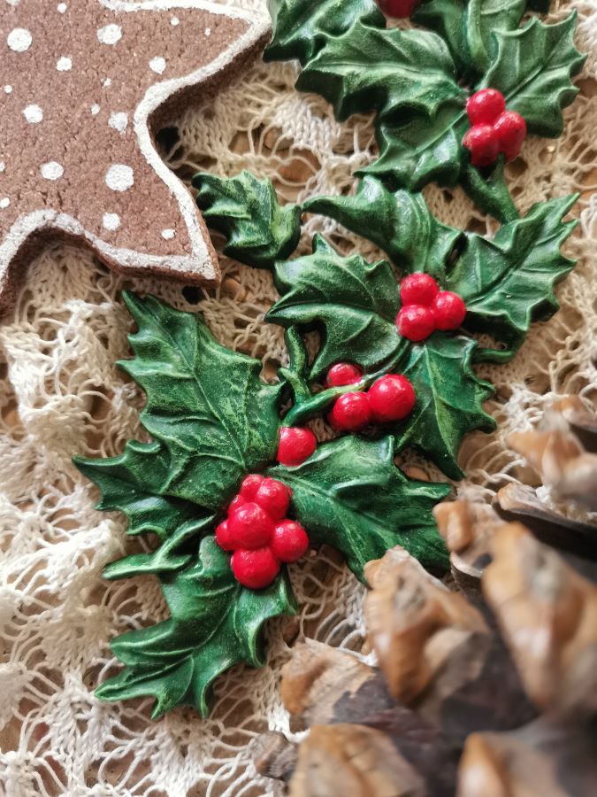 Neben zahlreichen Stechpalmenbüscheln und Beeren finden Sie auch wunderschöne Ranken, die Ihren Güssen einen natürlichen Effekt verleihen.