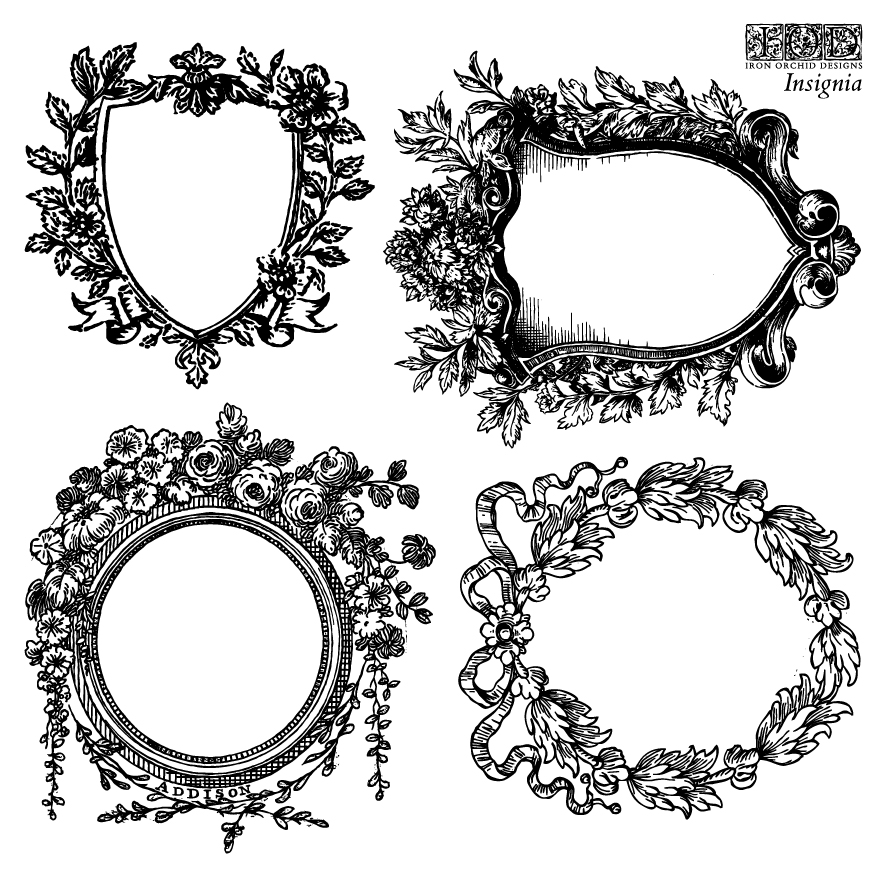 Ähnlich wie unser Apothecary Labels Stempelset enthält Insignia vier 6"x 6"-Bögen, jeder in einem eigenen Umschlag verpackt und in einer praktischen Box aufbewahrt.