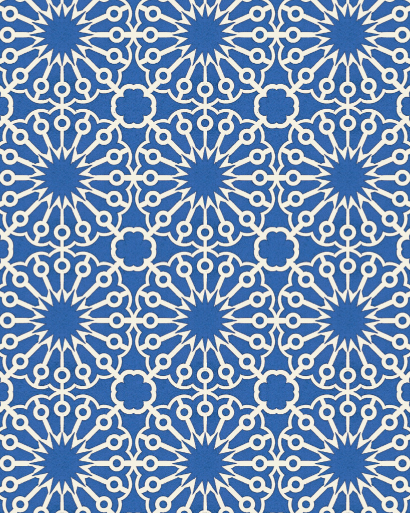 Dieses Decoupage-Papier von Annie Sloan in Zusammenarbeit mit der The Royal Horticultural Society (RHS) zeigt ein sich wiederholendes Sternmuster in Napoleonic Blue.