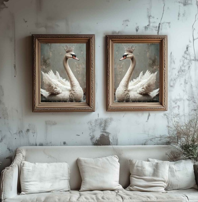 Perfekt für Mixed-Media-Projekte, Möbelgestaltung und stilvolle Wohnaccessoires, verleiht Swan Serenity Ihren Kreationen eine exquisite Note von Ruhe und Eleganz.