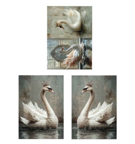 Dieses exklusive A3-Dekoupage-Faserpapier-Set fängt die Eleganz schneeweißer Schwäne ein – mit zarten Juwelenkronen, sanften Bewegungen und einer beruhigenden Ausstrahlung.