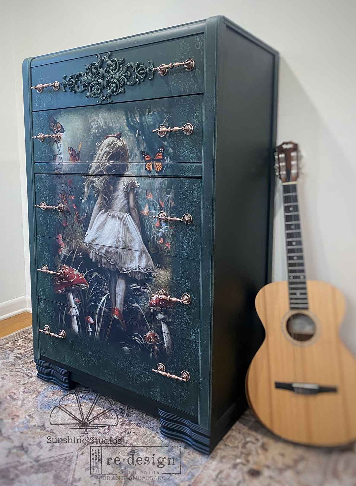 Das A1 Découpage-Papier „Dreamlike Trails“ ist ein Meisterwerk an bezaubernden Details - satte, tiefe Grüntöne gehen nahtlos in sanfte Erdtöne über, während leuchtend rote Pilze und zarte Schmetterlinge diese traumhafte Szene zum Leben erwecken.