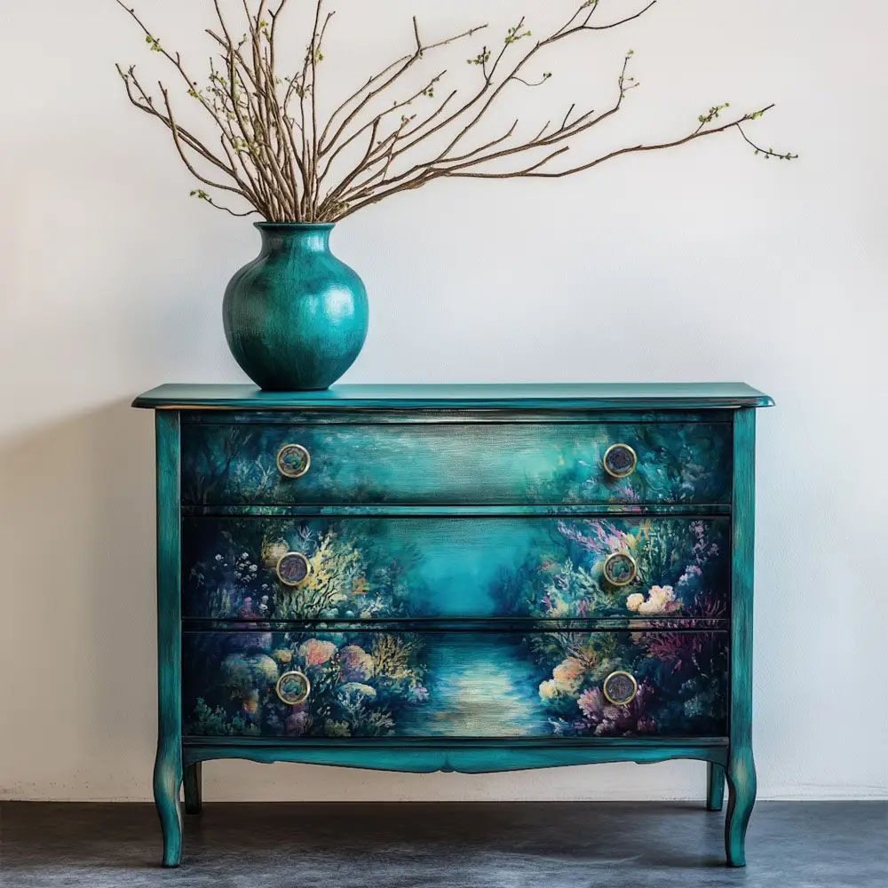Dieses hochwertige A1-Papier begeistert mit einem harmonischen Design aus zarten Korallentönen, Meeres Elementen und subtilen Vintage-Akzenten – ideal für kreative Köpfe, die ihren Möbelstücken, Leinwänden oder Dekoobjekten einen einzigartigen Look verleihen möchten