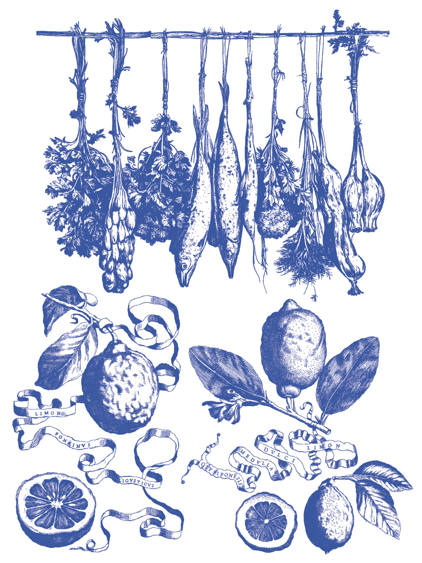 Das Inlay besticht durch seine intensiven Kobaltblau- und Weißtöne, kombiniert mit raffinierten Vignetten, dekorativen Bordüren und klassischer Typografie.