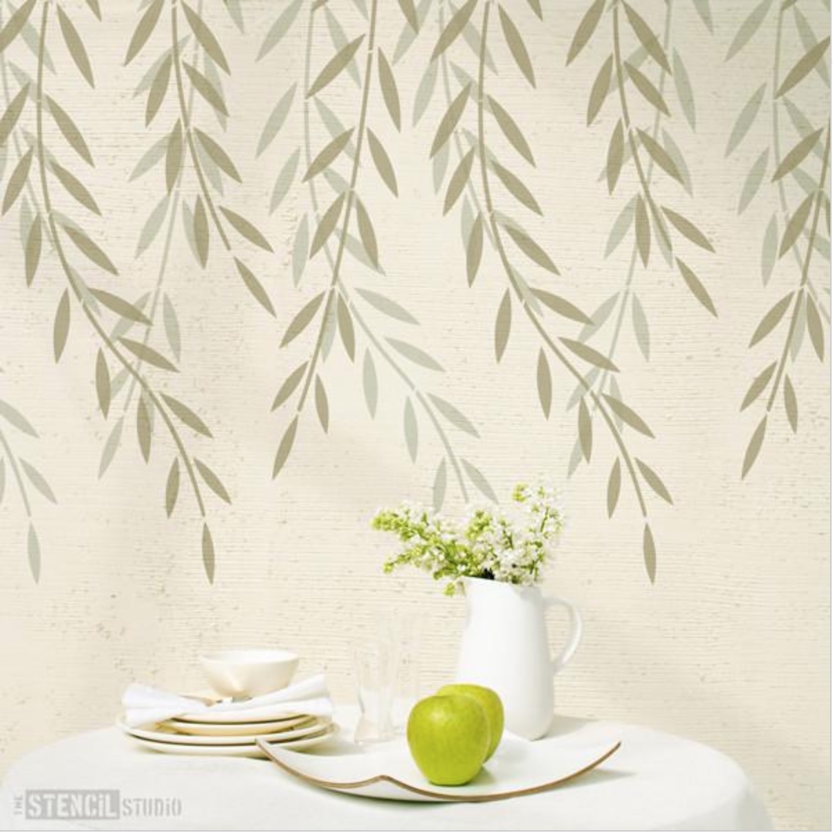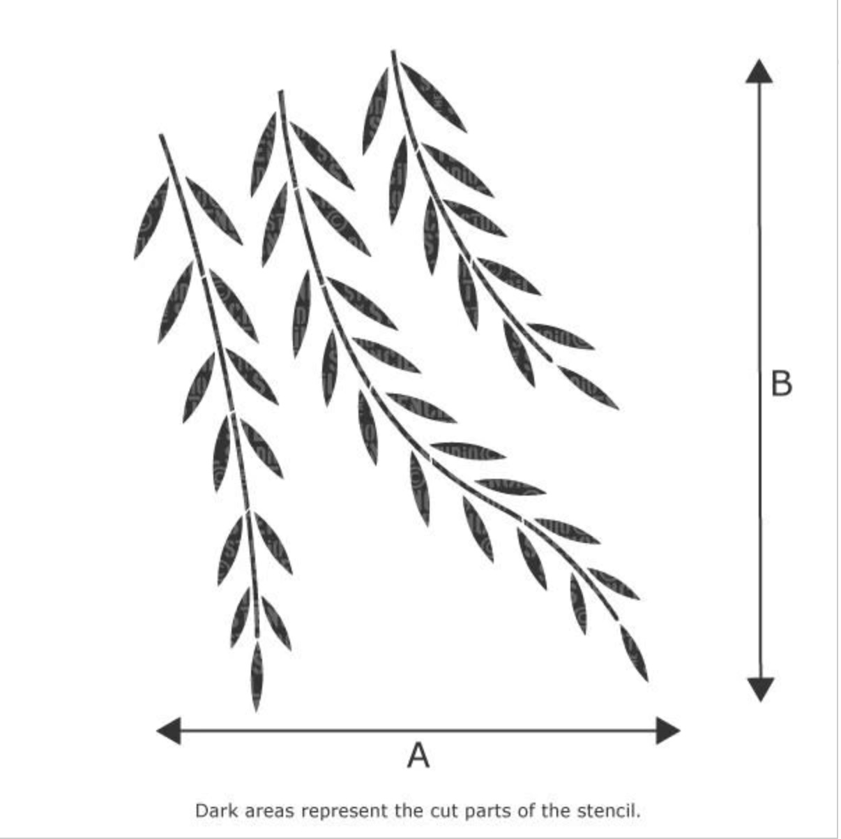 Drei große fließende Weidenzweige auf dieser Schablone. Sie können in verschiedenen Farben bemalt und übereinander gelegt werden,