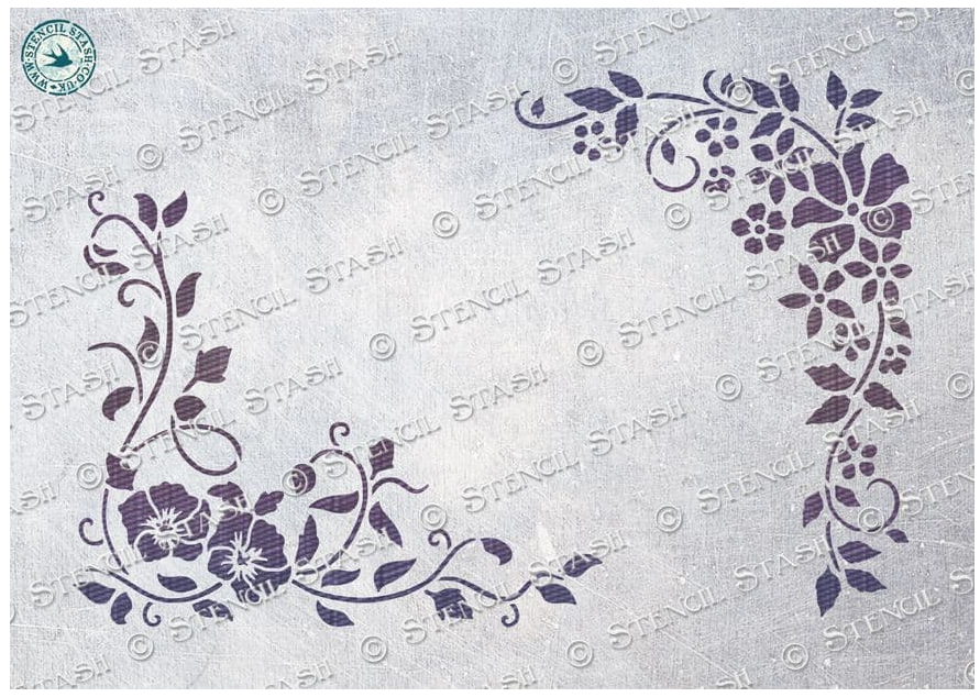 Diese wunderschöne Schablone hat 2 verschiedene Wildblumenecken-Motive.