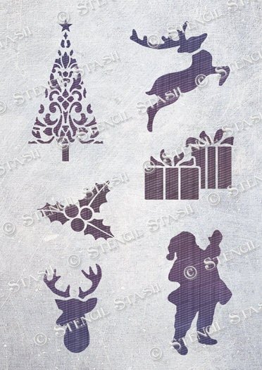 Ein Bogen mit weihnachtlichen Motiven, ideal für Schilder, Kisten, Fenster, Karten, Anhänger, Geschenkverpackungen, Stoffe und weihnachtliche Bastelprojekte.