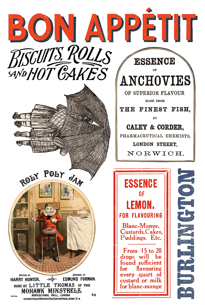 Mit herrlich nostalgischen Elementen wie dem frechen kleinen „Greedy Boy“, der nach dem Pudding greift (eine echte Vintage-Anzeige!) oder dem detailverliebten Imperial Granum-Etikett fühlt sich dieses Transfer-Set an, als würdest du in einer Vorratskammer um 1900 stöbern.