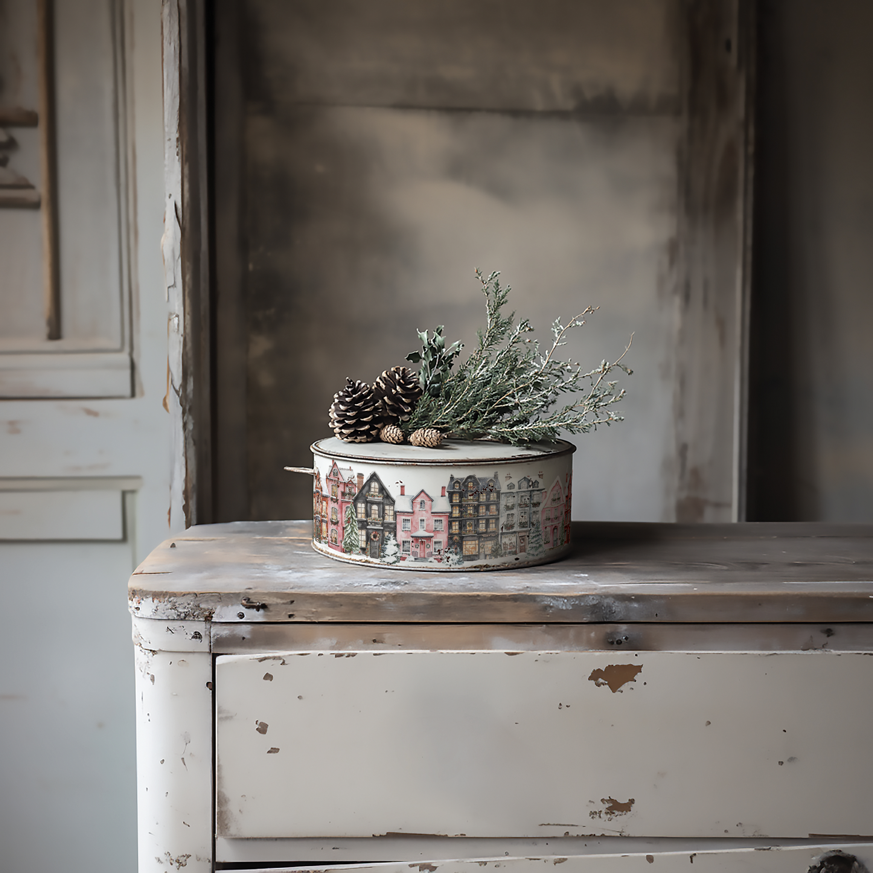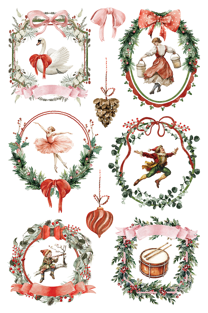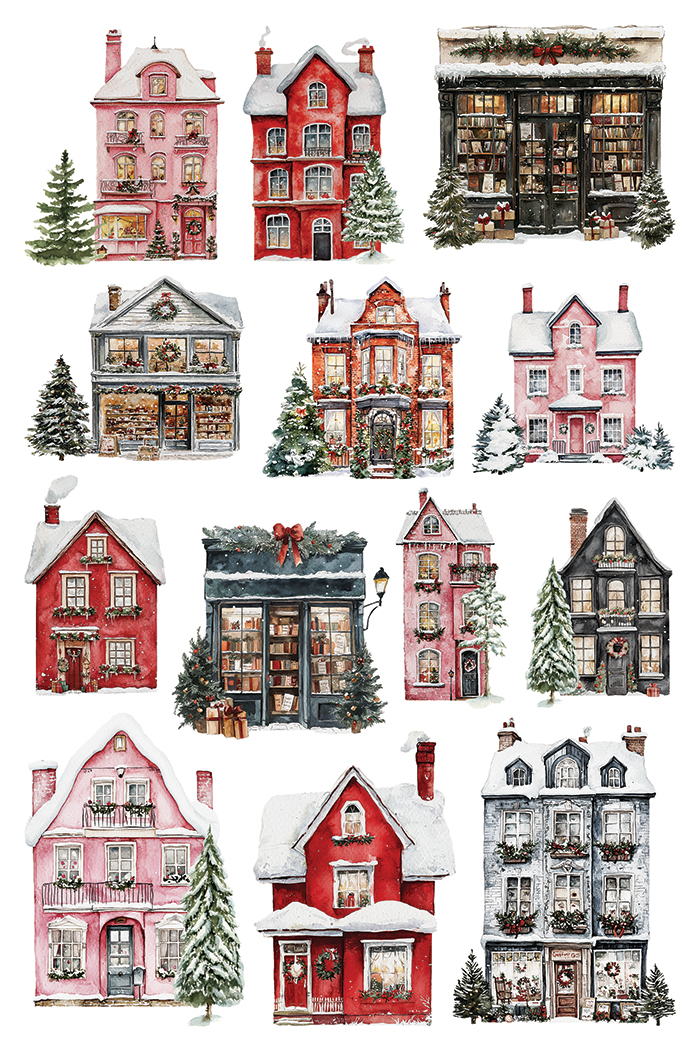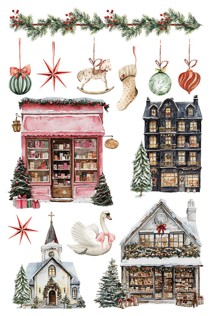 Der Partridge Lane Transfer von IOD bringt festliche Dörfer, zarte Girlanden und verspielte Weihnachtsakzente in Ihre DIY-Projekte.