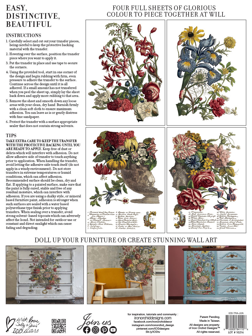 Das IOD June Transfer wurde speziell dafür entwickelt, sowohl dunkle als auch helle Farbtöne zu ergänzen. Sie haben die absolute Freiheit, genau den Look zu kreieren, den Sie wollen, egal ob Sie nur mit Weiß streichen oder es heißt "je mehr Farben, desto besser." Die Designvielfalt dieses Transfers macht es mühelos möglich, sich Ihrem bestehenden Einrichtungsstil anzupassen.