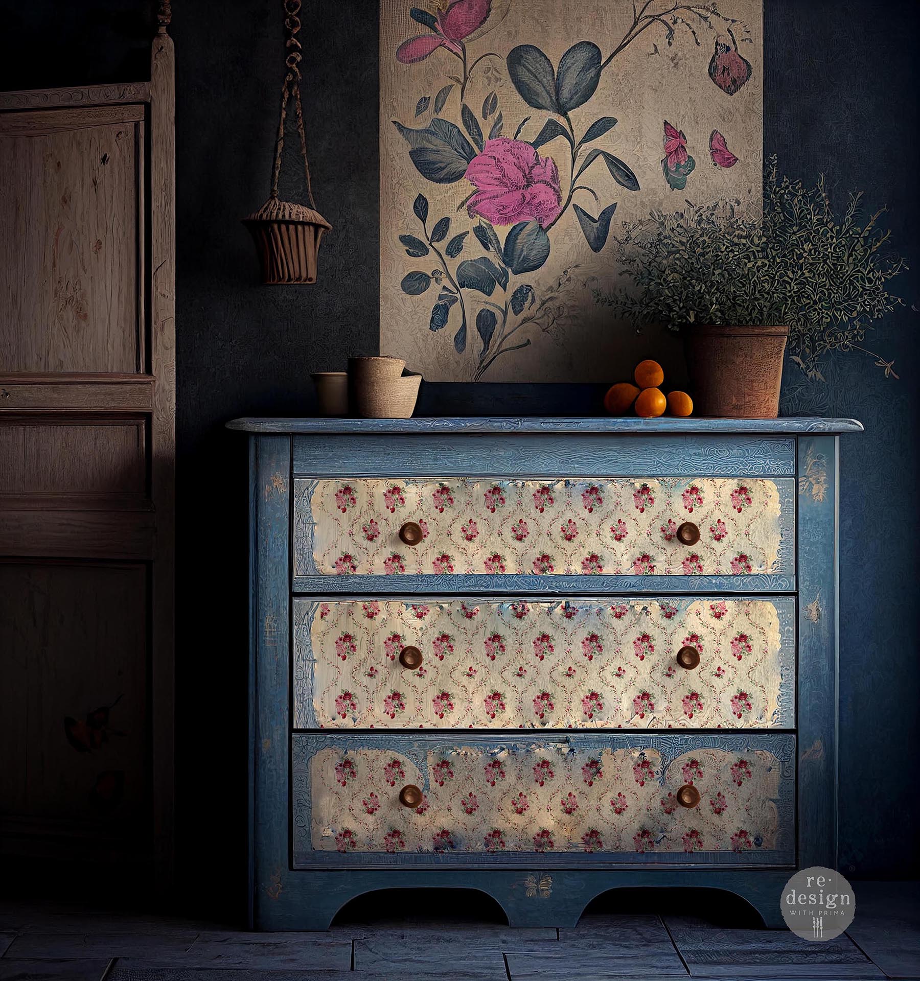 Ziehen Sie die Schutzfolie vom Transfer ab und legen Sie sie auf die vorbereitete Oberfläche. Reiben Sie das Transfer mit dem beiliegenden Spachtel oder dem Transfer Tool auf. Obere Folie abziehen und mit einem weichen Tuch nachpolieren. Bei Bedarf mit wasserbasiertem Lack oder Wachs versiegeln.