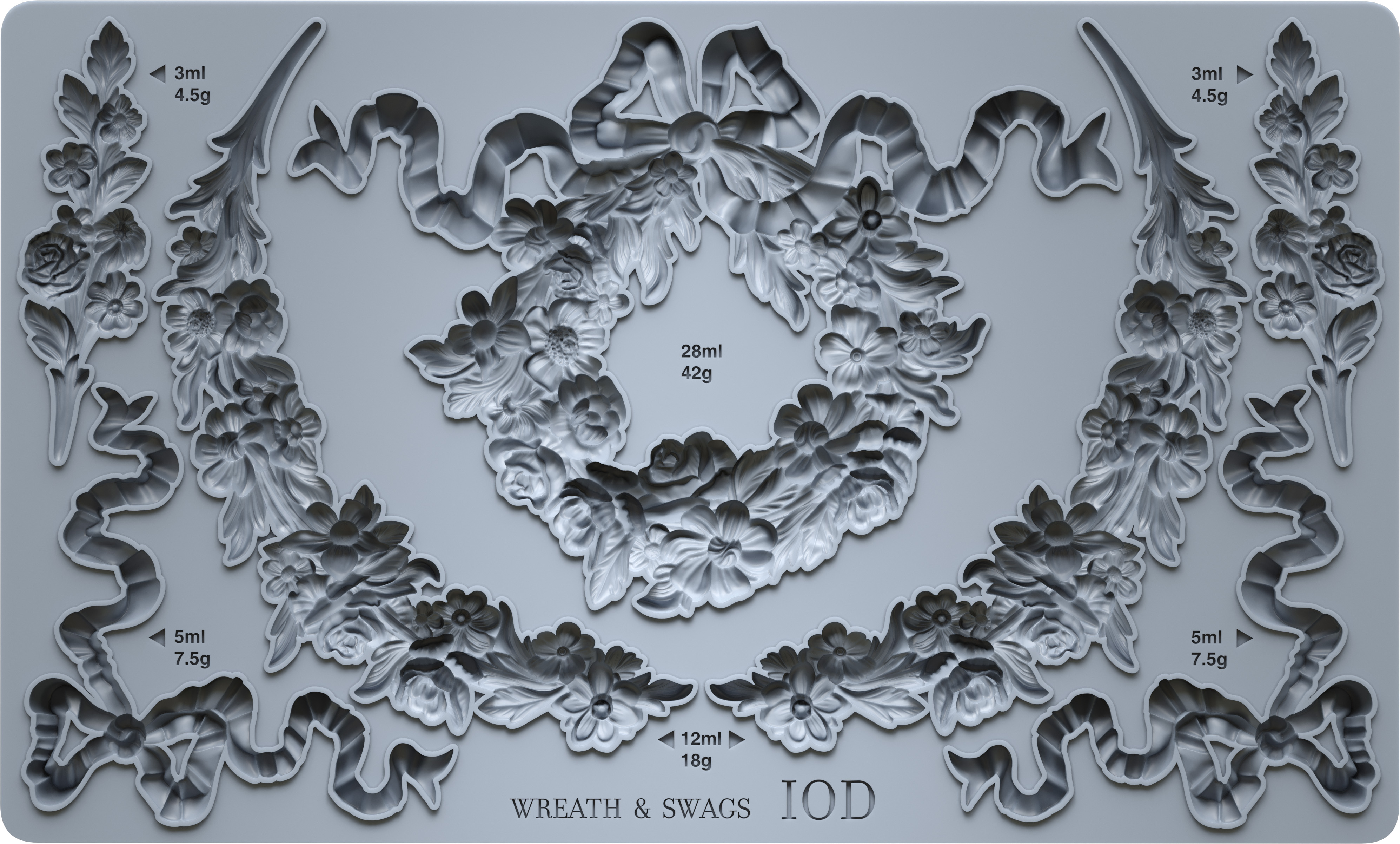 Die IOD Silikonform „Wreath and Swags“ vereint klassische Ornamentik mit vielseitigen Gestaltungsmöglichkeiten für Möbel, DIY- und Dekorationsprojekte.