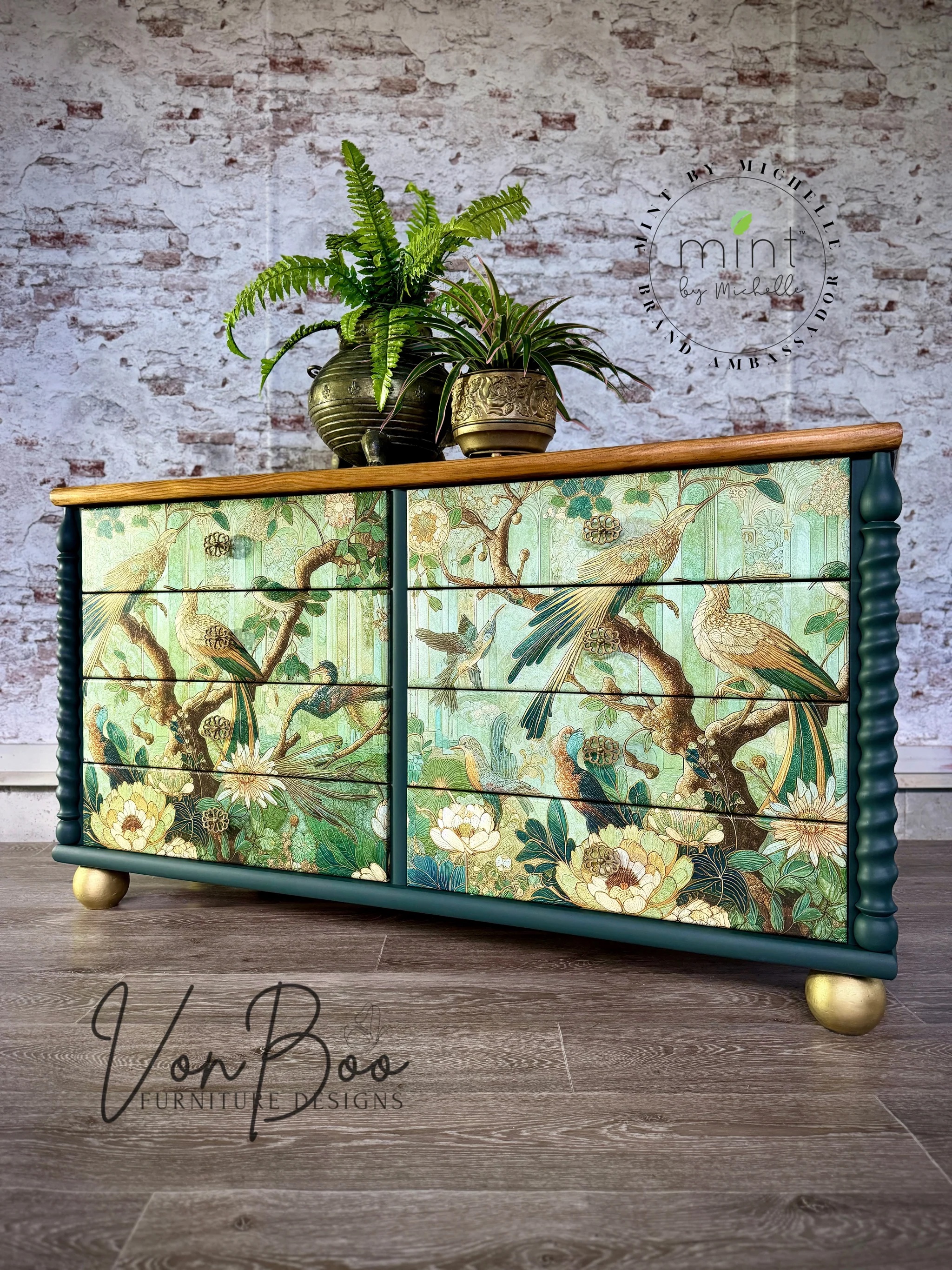 Mint Decoupage-Papiere werden mit einer ausführlichen Anleitung geliefert, oder Sie können sich die Anwendungsmethoden auf www.mintbymichelle.com ansehen.