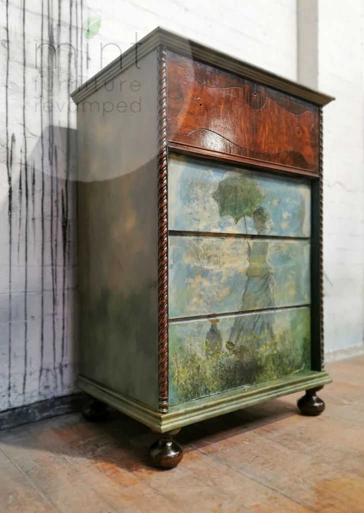 Die MINT-Decoupage-Papiere wurden speziell für die Möbelkunst und -renovierung entwickelt. Jedes Design ist in zwei Größen erhältlich, A1 und A3, und wird auf einem speziell für Decoupage ausgewählten Papier gedruckt.