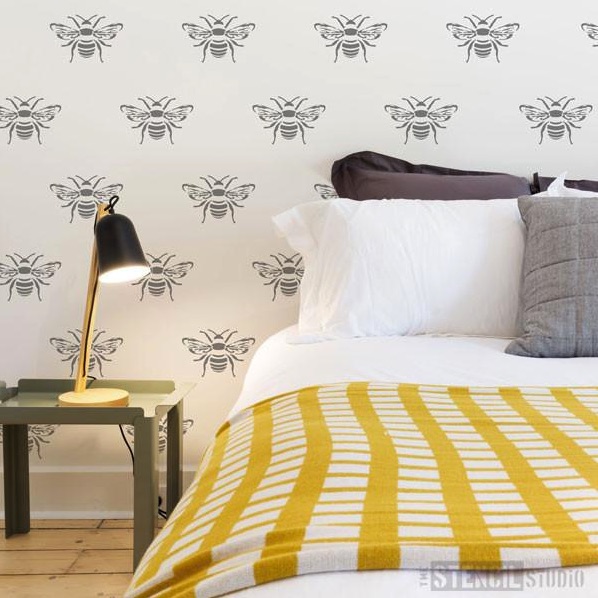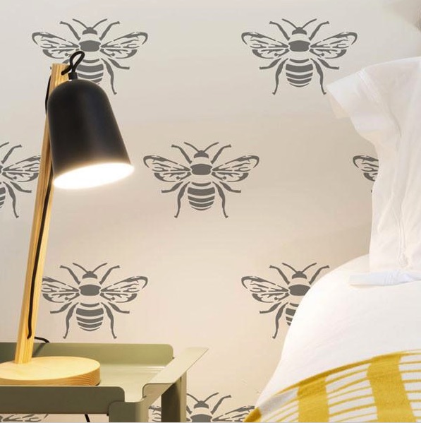 Vielseitige Bienenschablone, verwenden Sie diese kleine Insektenschablone für ein ganzflächiges Muster oder nur hier und da. Ideal für Möbel, Stoffe und Wände. Machen Sie sich an die Arbeit mit der Biene!