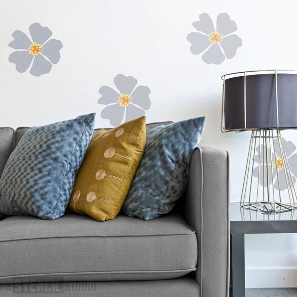 Rosenblüten und -knospen sowie Efeu in einer hübsch geformten Randschablone, die sich hervorragend für Wände oder Möbel eignet und in vielen Größen erhältlich ist, um Ihr Schablonenprojekt zu realisieren.