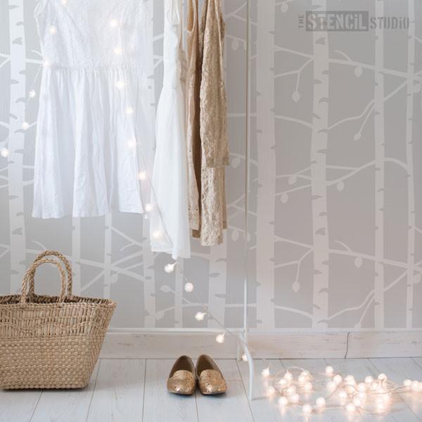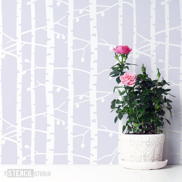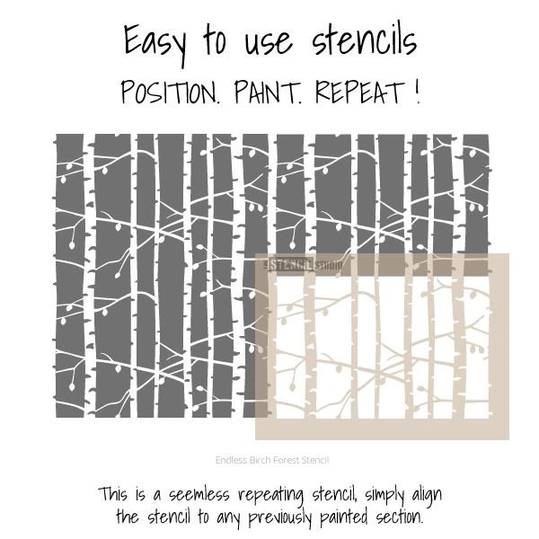 Einfache Handhabung! Diese Schablone wiederholt sich in alle Richtungen, so dass Sie einen ganzen Wald von schablonierten Bäumen mit nur einer Schablone erstellen können!