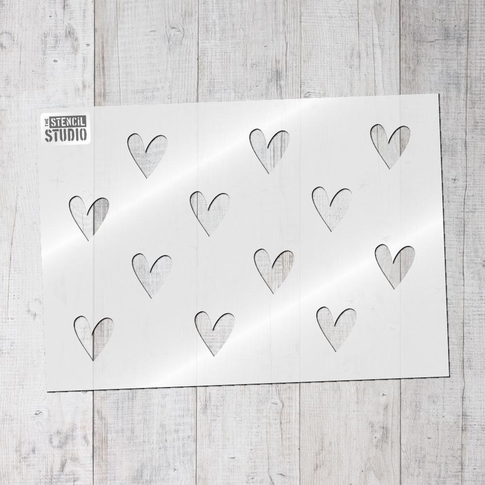 Schlichte, schicke Vintage-Herzschablone mit zwölf Herzen.