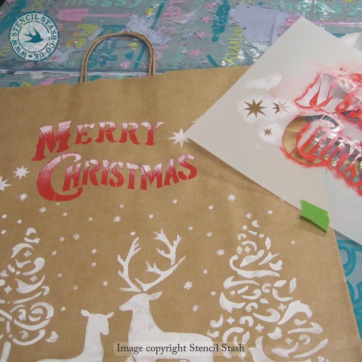 Eine festliche Schablone für Weihnachten. Perfekt für die Dekoration von Schildern, Kisten, Geschenkpapier, Fenstern, Karten, Stoff und Weihnachtsbasteleien.