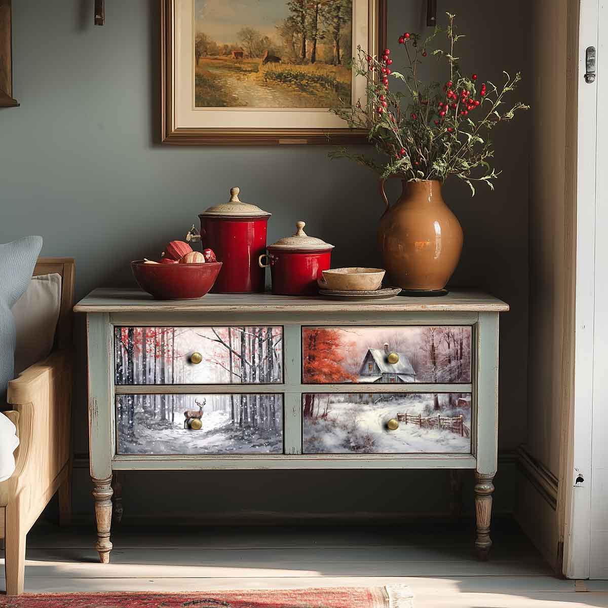 Die besten Ergebnisse erzielen Sie mit Decoupage Gel in Glanz oder Matt, um Ihre Winterszenen zu versiegeln und zu schützen.