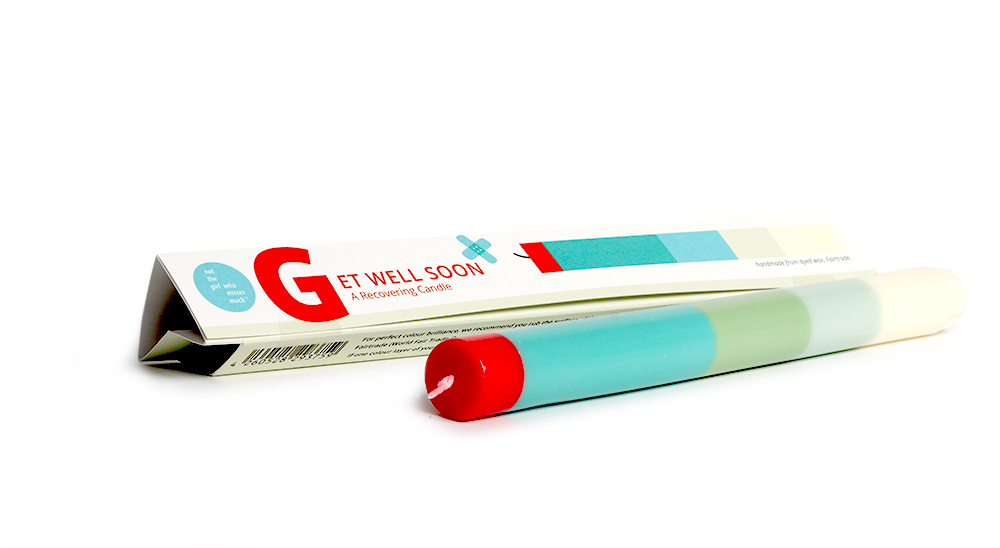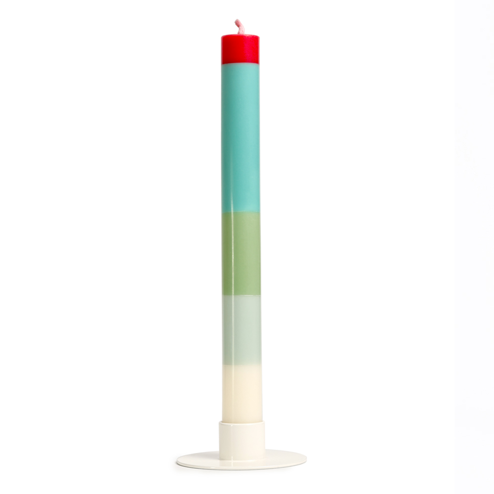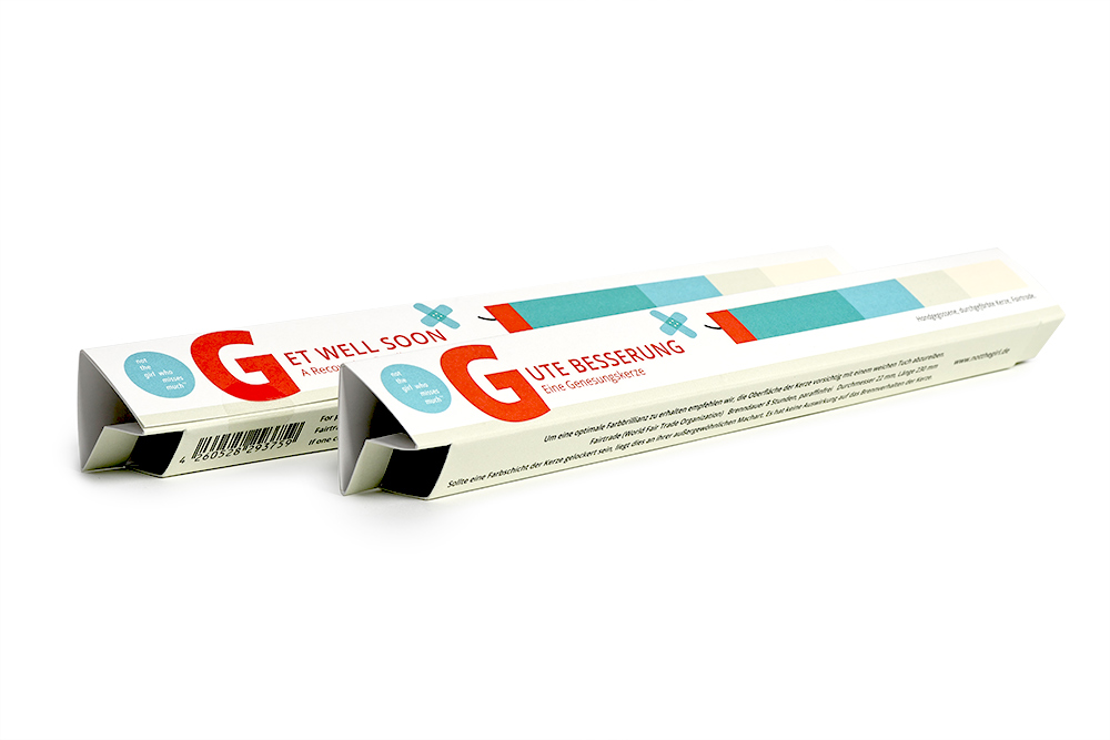 Mehrfarbige Kerze mit Botschaft. Als Geschenk, Glückwunsch oder als Gruß einzeln in farbiger Kartonage verpackt. Die Kerze ist aus durchgefärbtem Wachs, bei der Fertigung wird Farbschicht für Farbschicht von Hand gegossen.
