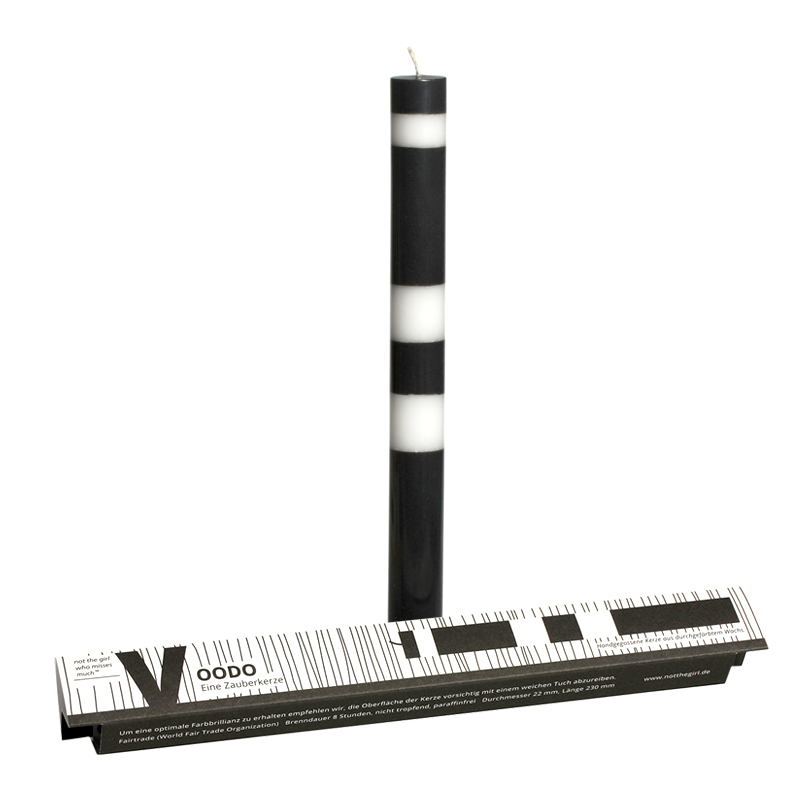 Mehrfarbige Kerze mit Botschaft. Als Geschenk, Glückwunsch oder als Gruß einzeln in farbiger Kartonage verpackt. Die Kerze ist aus durchgefärbtem Wachs, bei der Fertigung wird Farbschicht für Farbschicht von Hand gegossen.
