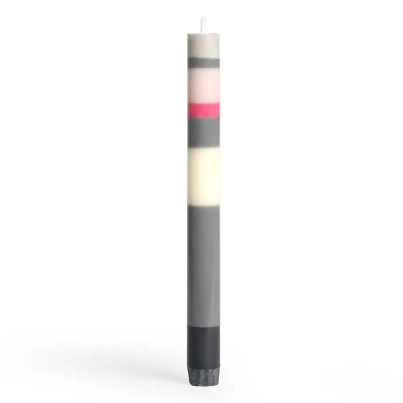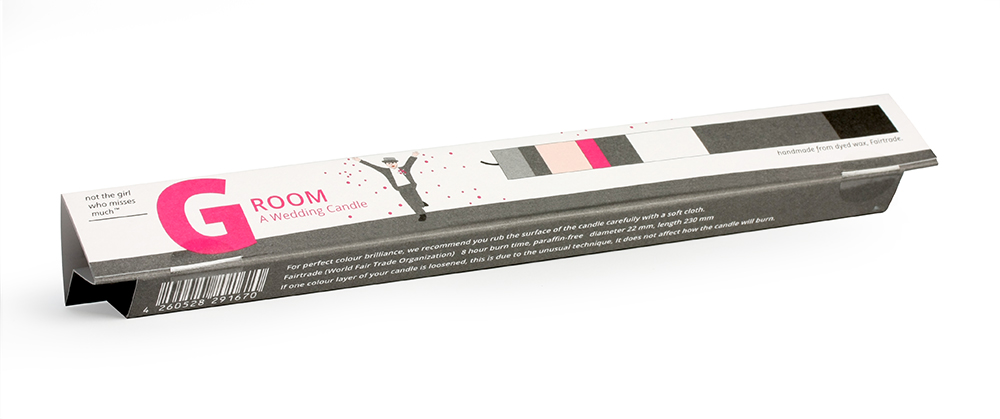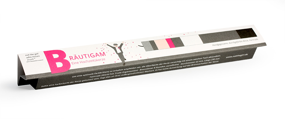Mehrfarbige Kerze mit Botschaft. Als Geschenk, Glückwunsch oder als Gruß einzeln in farbiger Kartonage verpackt. Die Kerze ist aus durchgefärbtem Wachs, bei der Fertigung wird Farbschicht für Farbschicht von Hand gegossen.