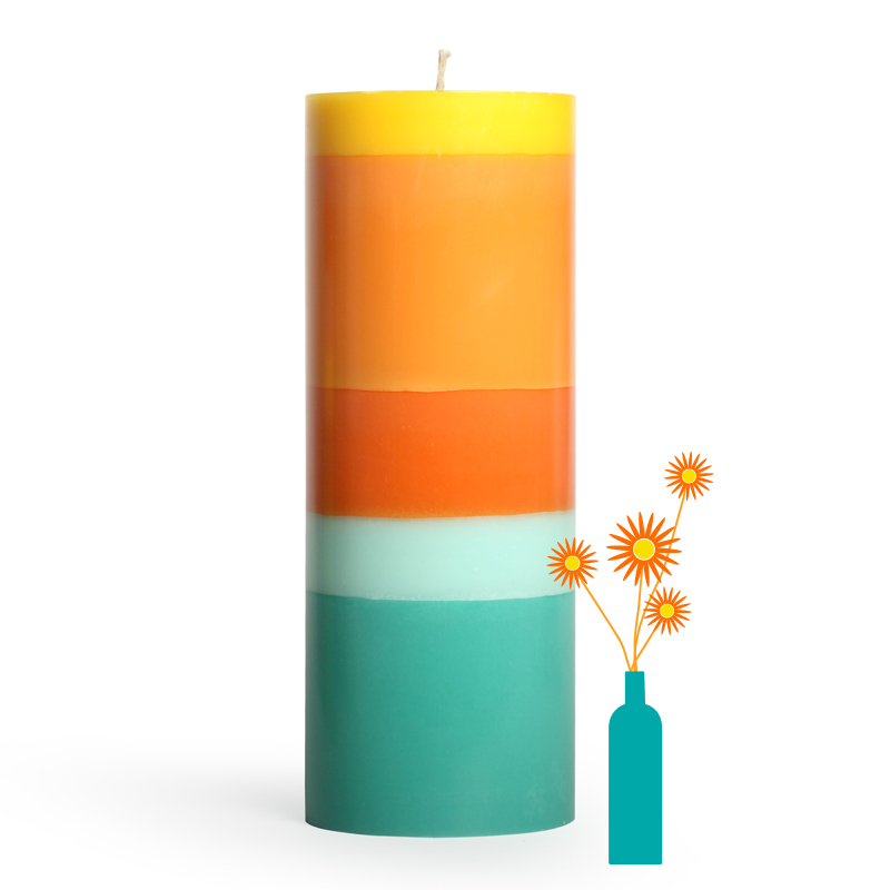Aus durchgefärbtem Wachs wird die Kerze Farbschicht für Farbschicht per Hand gegossen.
