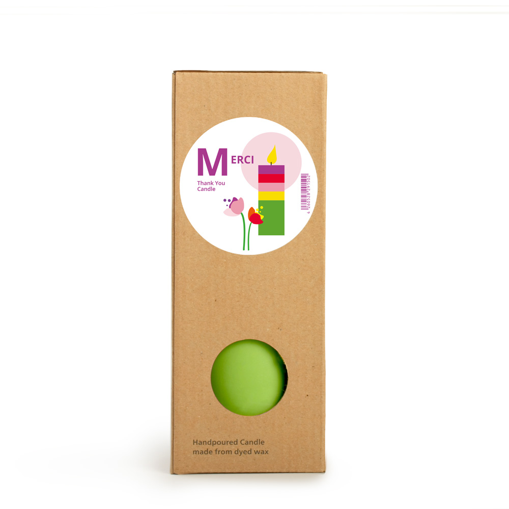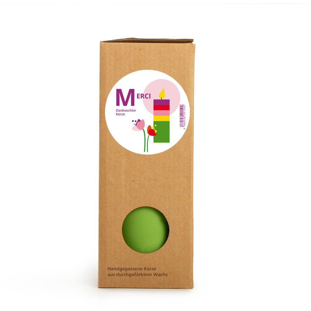 Ein dickes Dankeschön in Form einer Kerze, in den Farben eines großen Blumenstraußes.