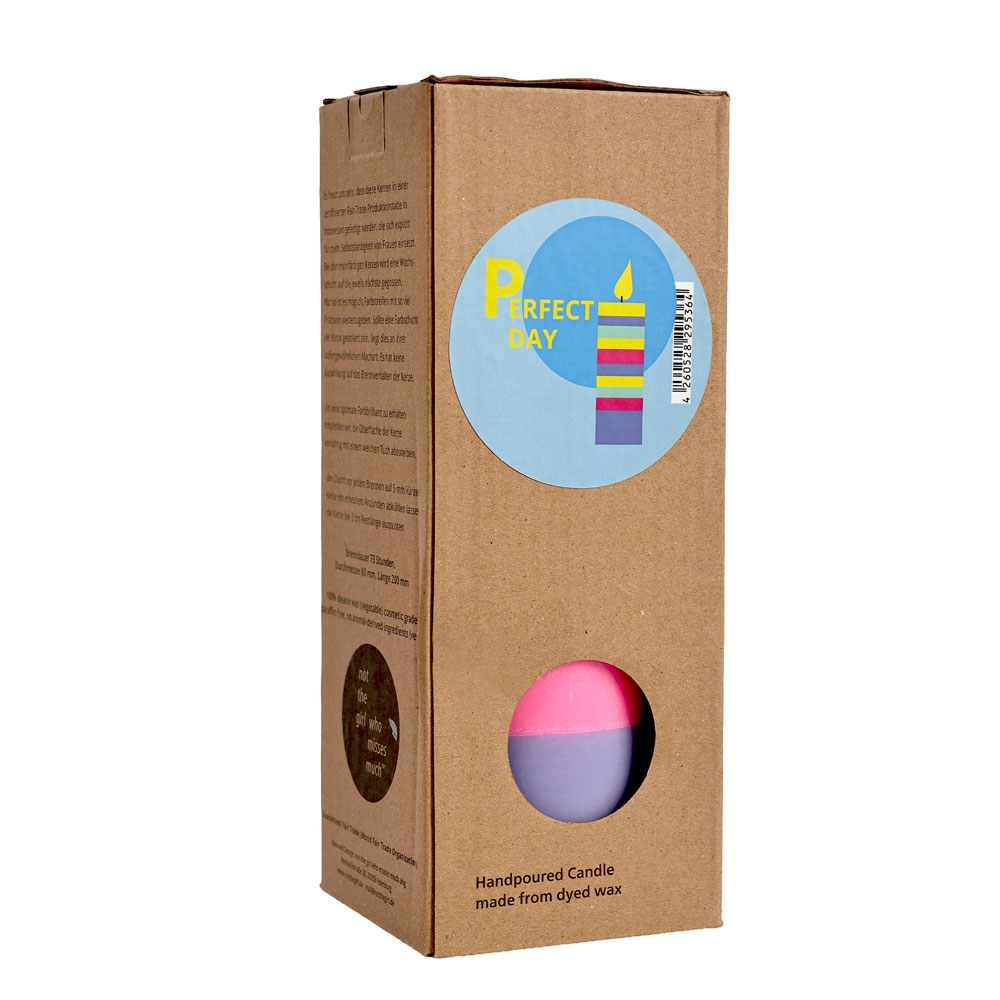 Gefertigt aus durchgefärbtem, pflanzlichem Stearin-Wachs in liebevoller Handarbeit. Jede Kerze ist ein Unikat. Verpackt ist sie in einem stabilen Naturkarton, klimaneutral bedruckt auf FSC-zertifiziertem Papier – zweisprachig auf Deutsch und Englisch.