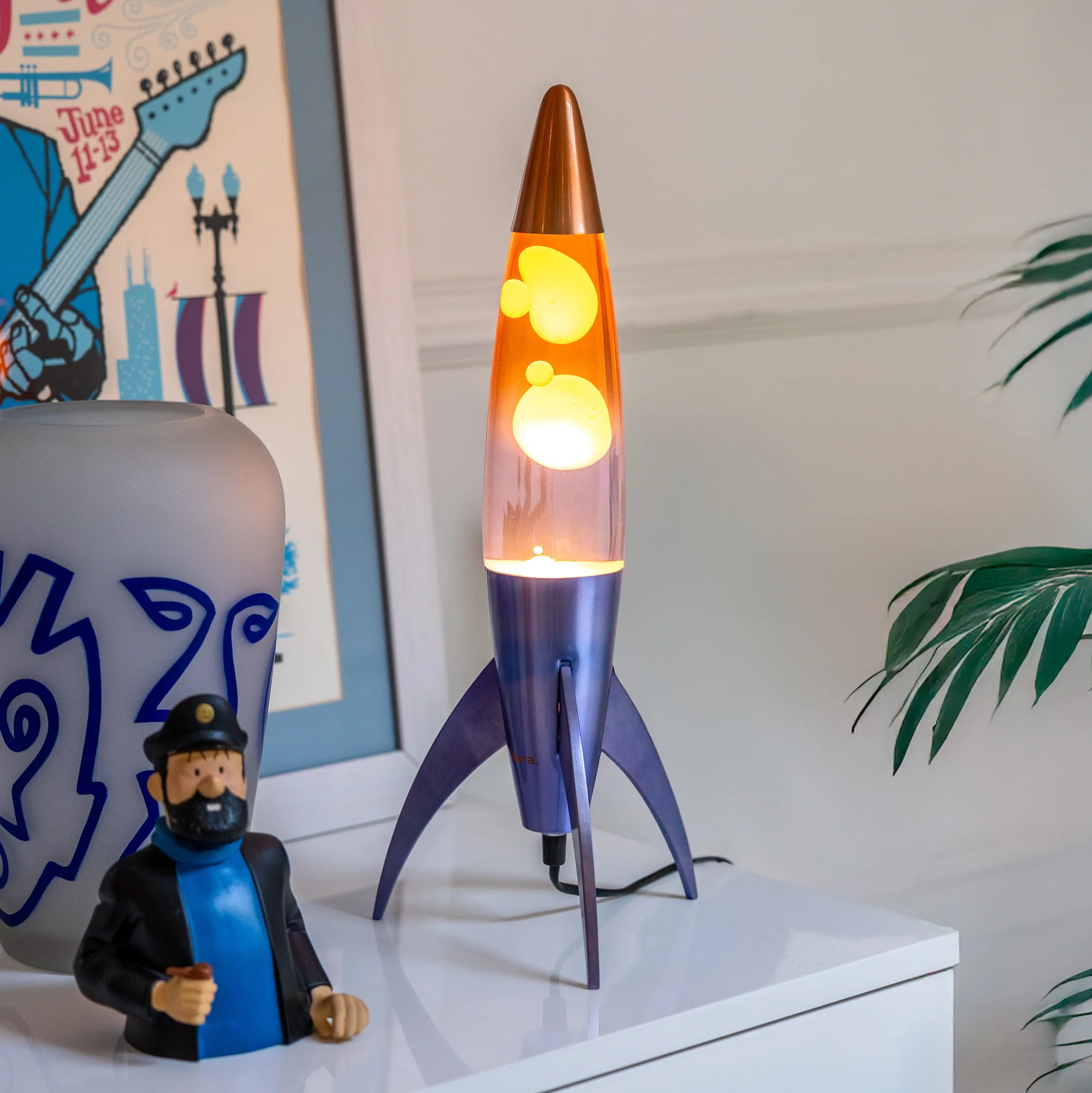 Diese einzigartige Lava-Lampe im Raketen-Design kombiniert hypnotisierendes Blau und Orange mit Farbverlauf und entführt dich in die unendlichen Weiten des Universums.