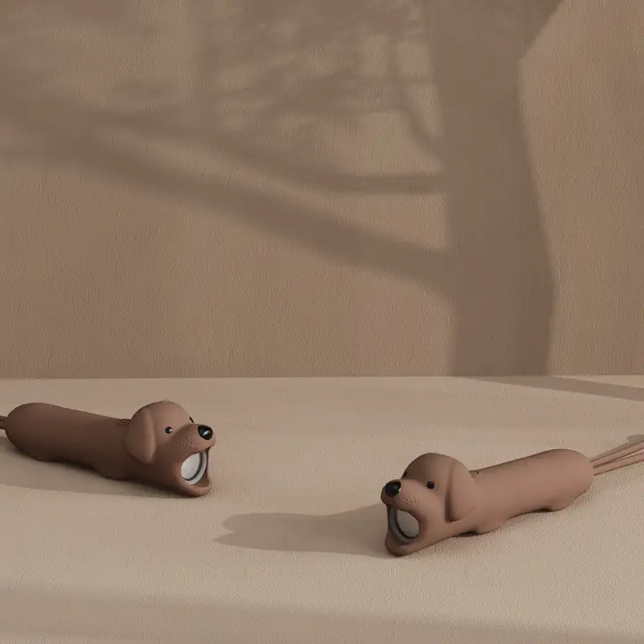 In Form eines braunen Hundes gestaltet, strahlt das Licht aus seinem Maul – verspielt, originell und funktional zugleich.