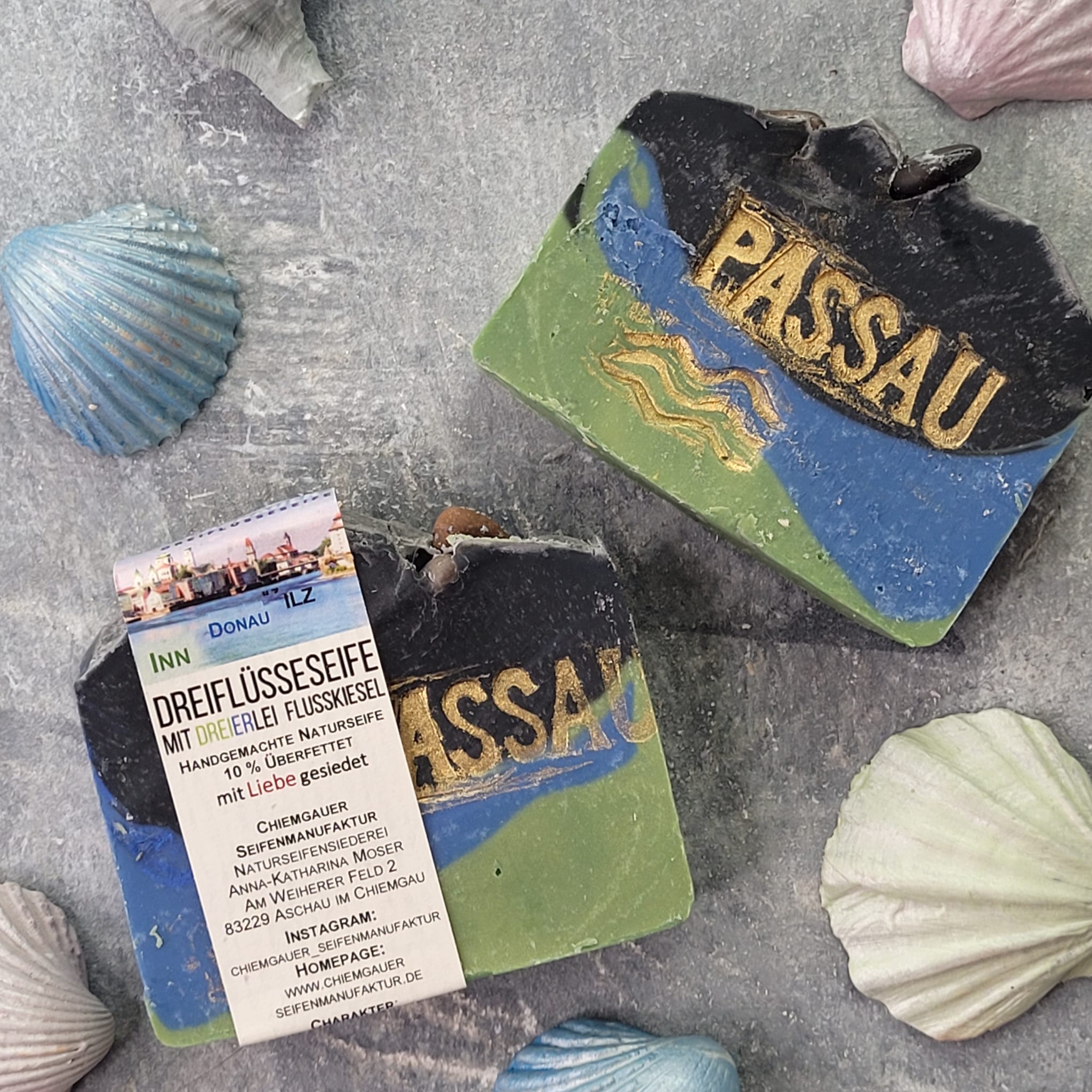 Die Dreiflüsseseife vereint die Farben der blauen Donau, dem grünen Inn und der schwarzen ..... ?! Wer weiss es?!