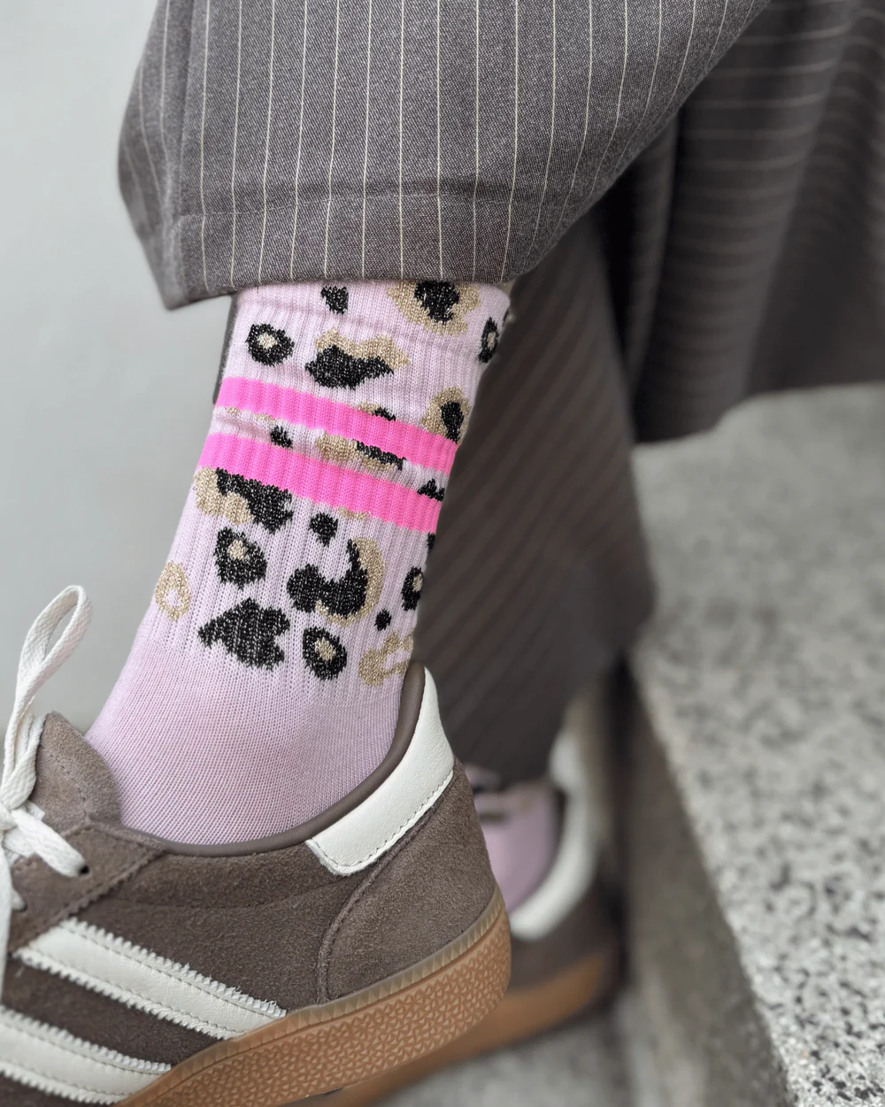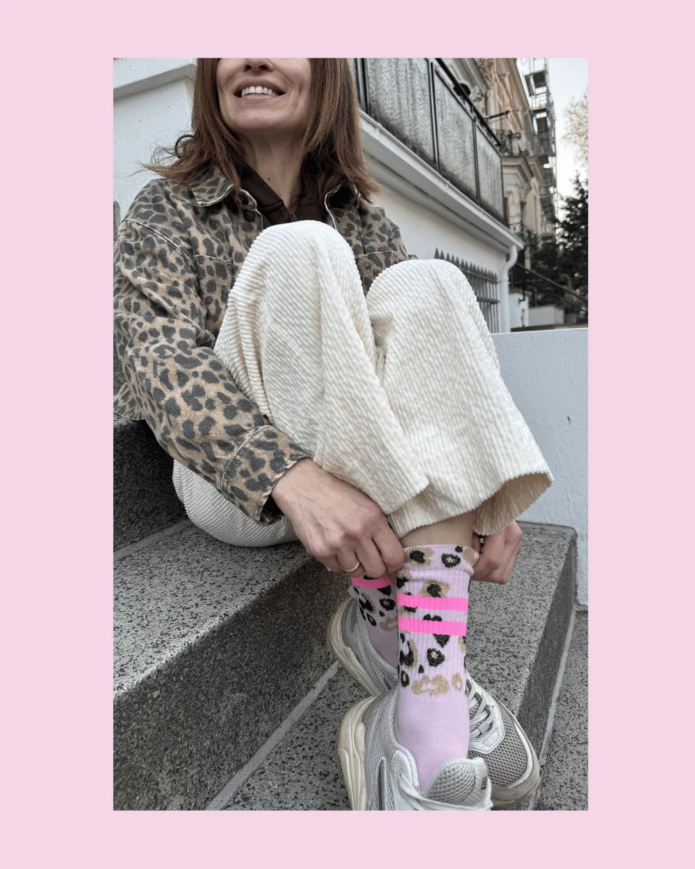 Die Leo Allover Socks in NEON Rose von Ooley sind für alle, die sich nicht entscheiden wollen: auffällig, aber nicht laut.