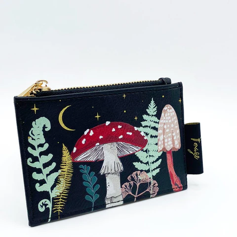 Bringen Sie ein Stück Zauber in Ihre täglichen Einkäufe mit der Forage Purse! Diese wunderschöne Geldbörse ist mit handgezeichneten Illustrationen von Fliegenpilzen und Farnen verziert, die im magischen Licht des Mondes erstrahlen. Diese zauberhafte Börse wird Ihre täglichen Ausgaben mit einem Hauch von Naturwunder verschönern – ob beim Kaffeekauf, im Supermarkt oder beim Sparen Ihrer Münzen. Sie verfügt über vier goldene Kartenfächer und ein Reißverschlussfach, damit Sie sowohl Karten als auch Bargeld sicher und stilvoll verstauen können.