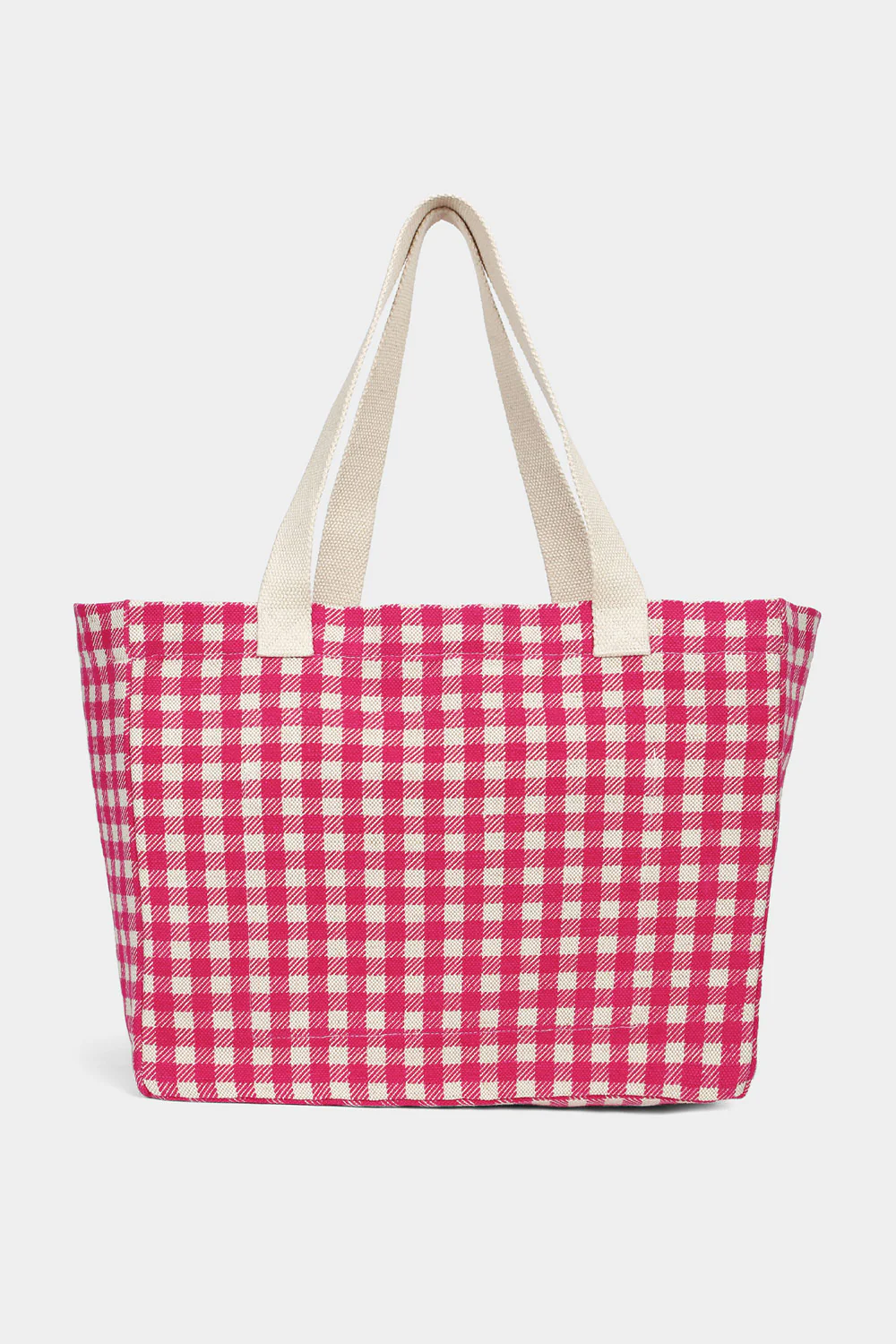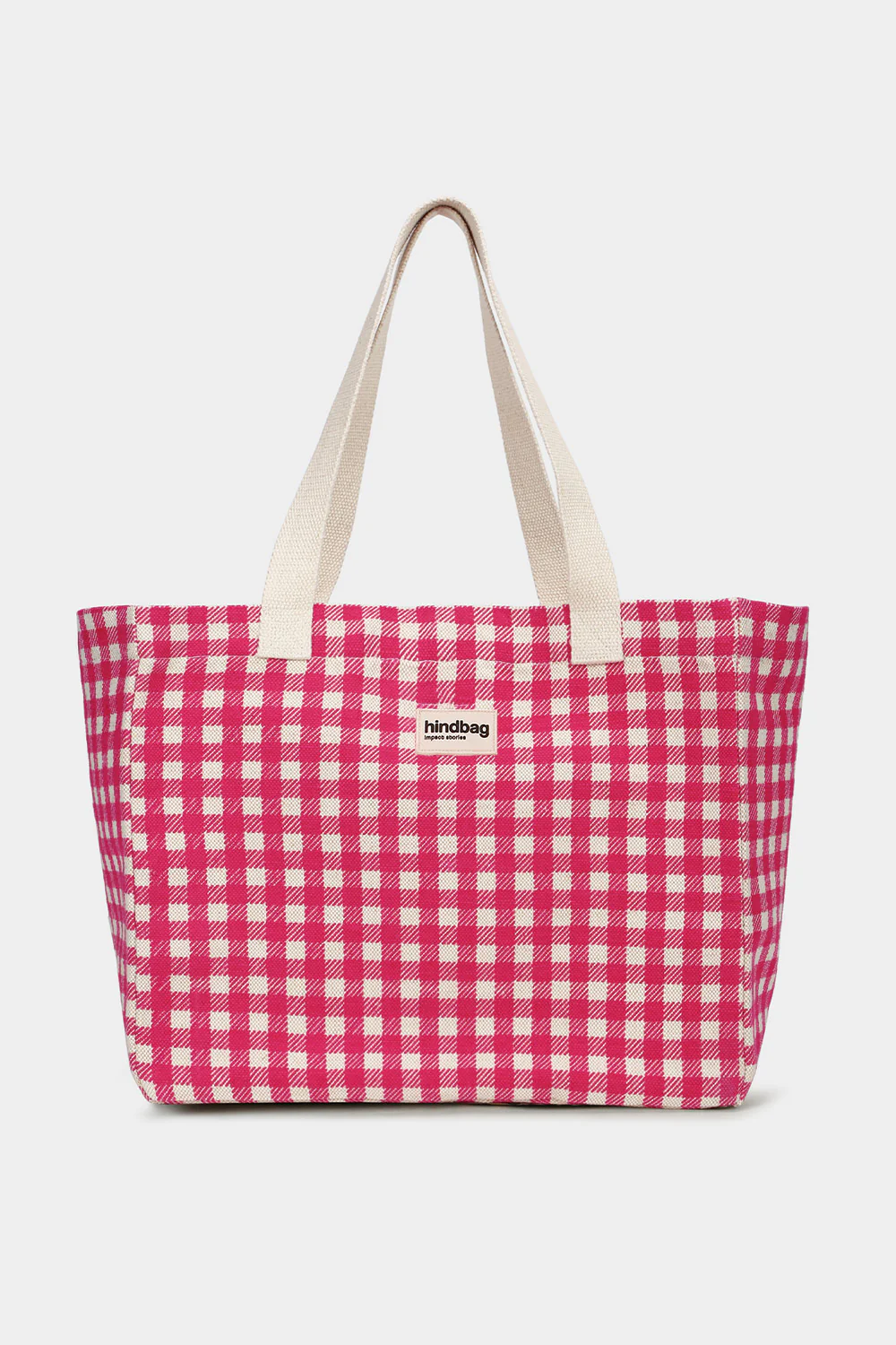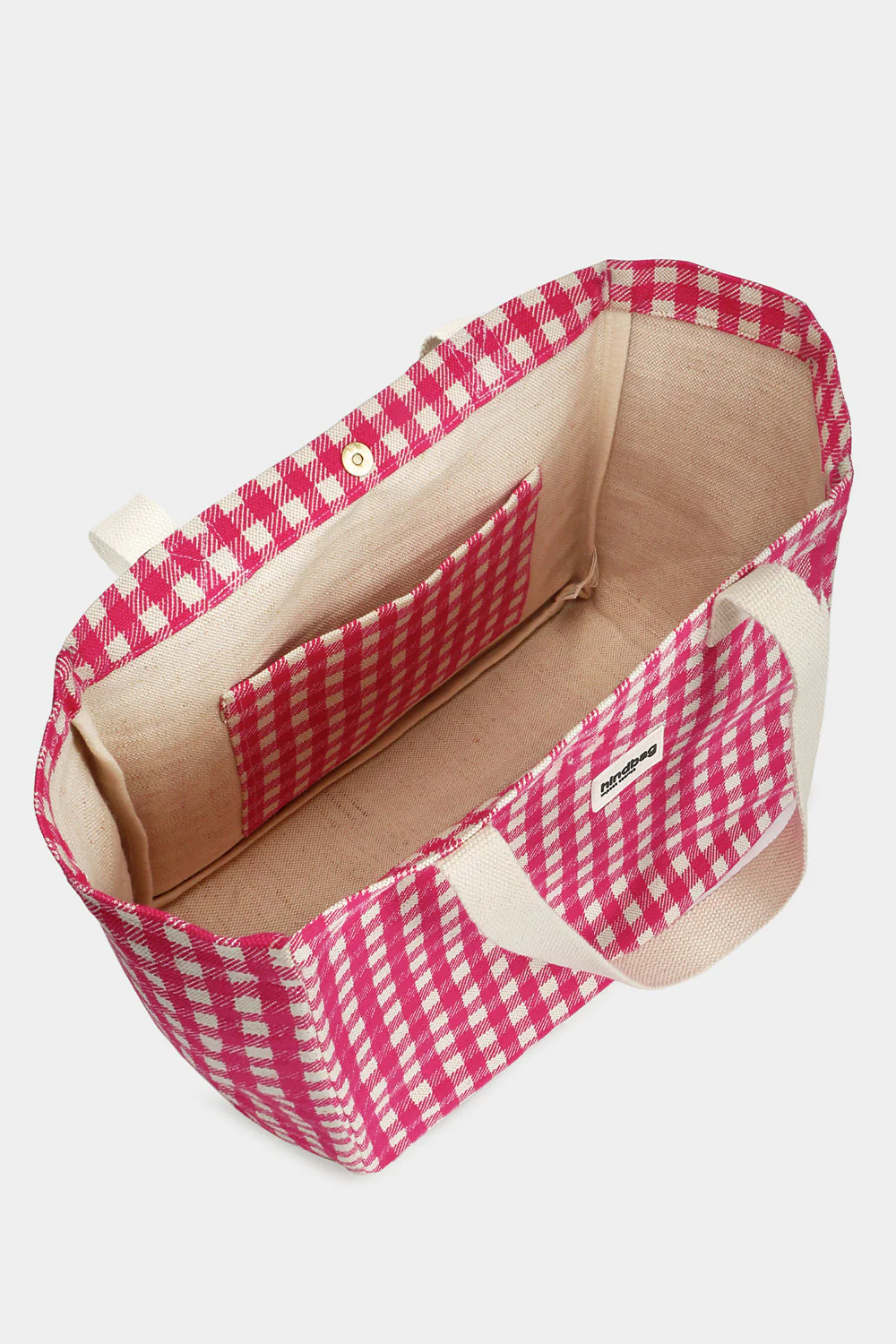 Das angesagte Vichy-Muster in zartem Rosa verleiht dem Klassiker eine moderne Note – perfekt für den französischen Sommer-Look. Hergestellt aus einer hochwertigen Mischung aus Bio-Baumwolle und Jute, bringt die Tasche Vintage-Charme und Nachhaltigkeit in Einklang.