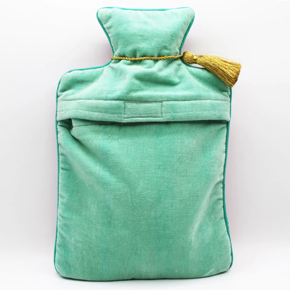 Samt, Baumwollfutter, Glasperlen und eine Gummiwärmflasche